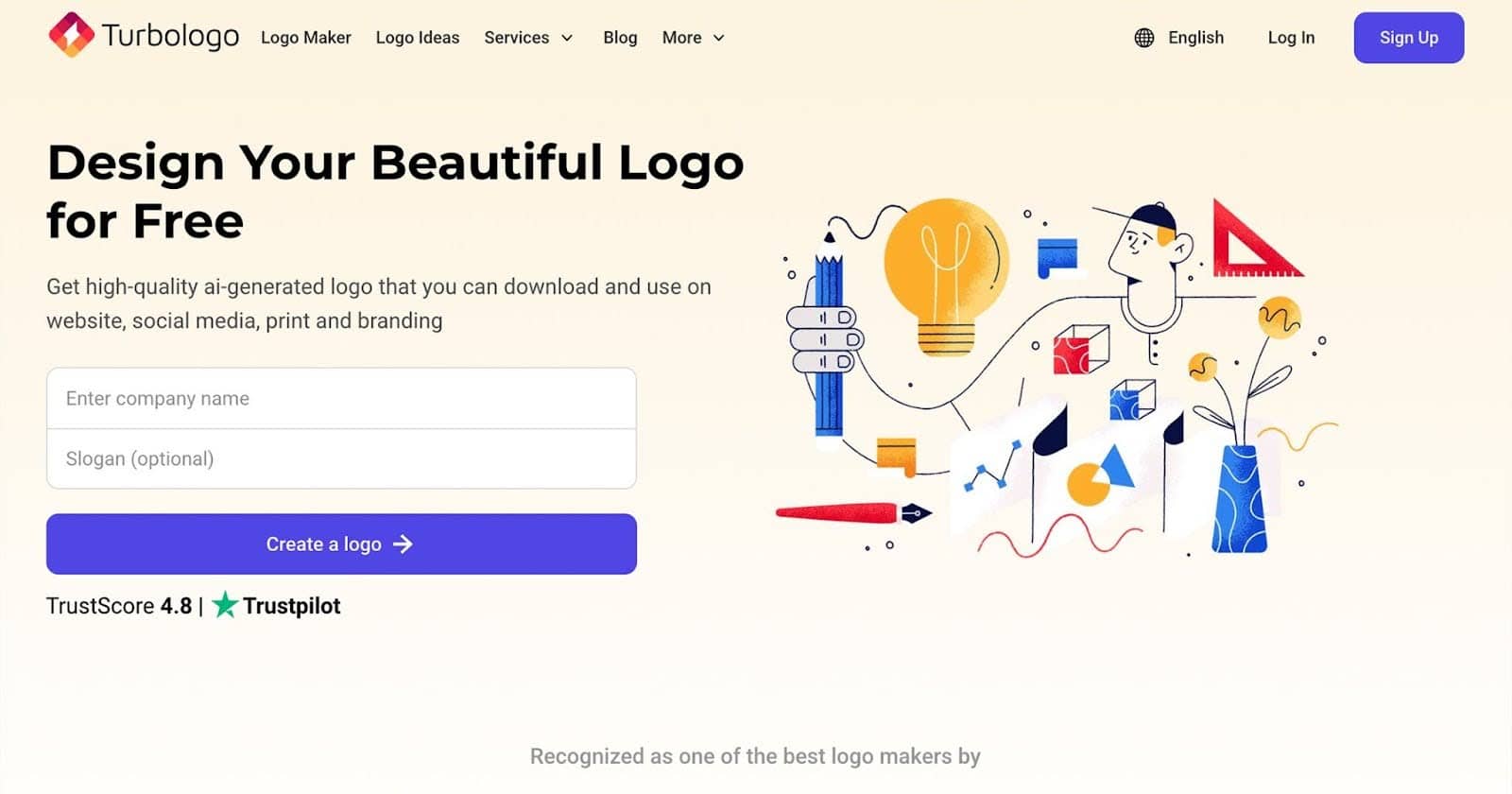 It’s perfect for beginners, creating logos in minutes. Its Trustpilot score of 4.8 is also high.